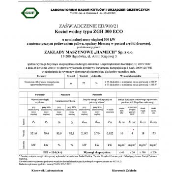 Kocioł ZGH-300 ECO jest kotłem niskotemperaturowym opalanym zrębka bądź trociną. Zespół grzewczy zbudowany jest z paleniska oraz wymiennika ciepła, z komorą nawrotną i płomieniówkami. Ceramiczna komora paleniska, oprócz dwóch ciągów spalin obniżających emisję szkodliwych subtancji do środowiska naturalnego, została wyposażona w ruchomy ruszt. W celu zwiększenia sprawności urządzenia dopływy powietrza zostały podzielone na pierwotne (odpowiadadające za proces spalania) oraz wtórne (proces dopalania).